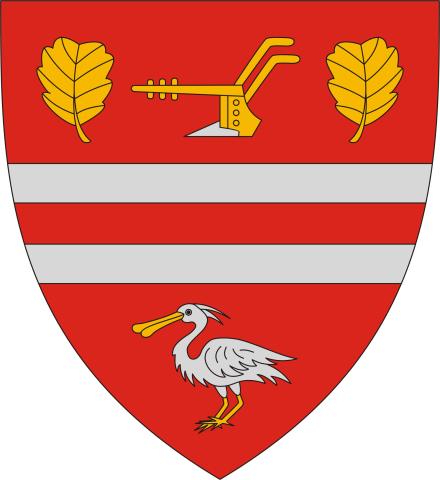A címer álló helyzetű, háromszögű pajzs. A veres pajzsmezőt középen két ezüstpólya szeli át, a felettük lévő pajzsfőben egy ezüst ekevasú, aranyeke látható, mely a község eredeti (keltezés nélküli) pecsétjéből származik. A község pecsétjéből származó kerék nélküli eketípust a legrégebbről ismert ekeábrázolás alapján ábrázolja a címer.
